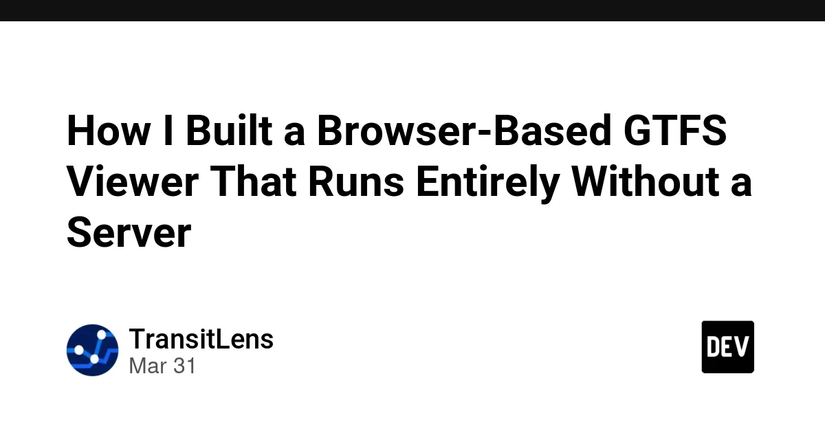개발자가 서버 없이 브라우저에서 대용량 GTFS 피드를 분석하는 TransitLens 도구를 구축한 사례