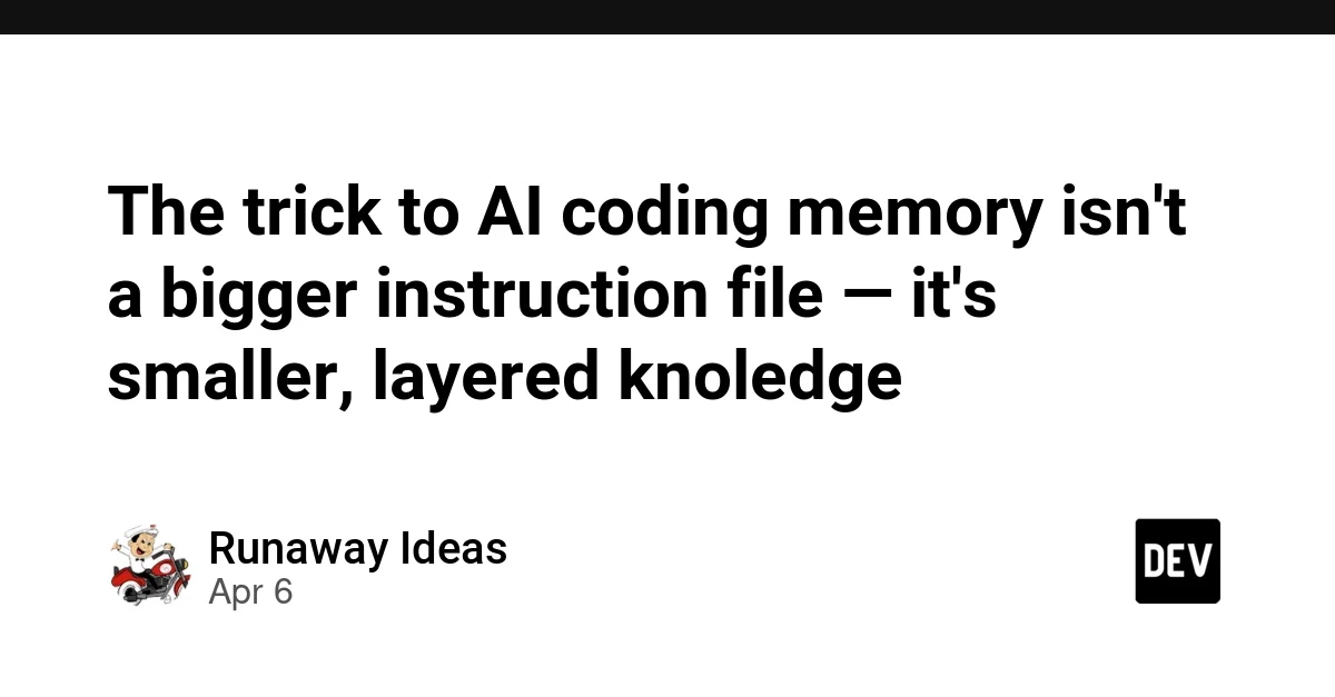 The trick to AI coding memory isn't a bigger instruction file — it's smaller, layered knoledge