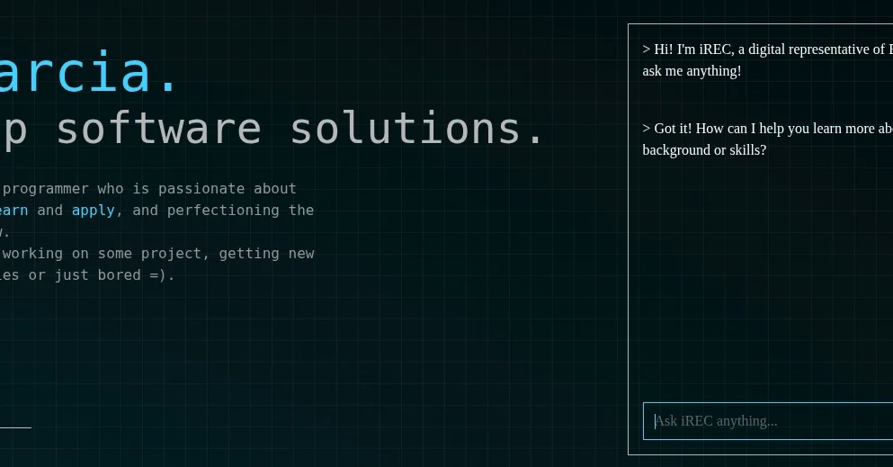 포트폴리오 웹사이트에는 방문자의 궁금증에 즉각 응답하는 기능이 없어 정보 접근성에 한계가 있었다. 개발자는 자기소개 챗봇을 직접 구현하면 AI 개발 역량을 보여주면서 방문자 경험도 개선할 수 있다고 판단했다. 구현 목표는 프로젝트, 경험, 관심사 등을 질문하면 답변하는 iREC라는 이름의 대화형 에이전트였다.