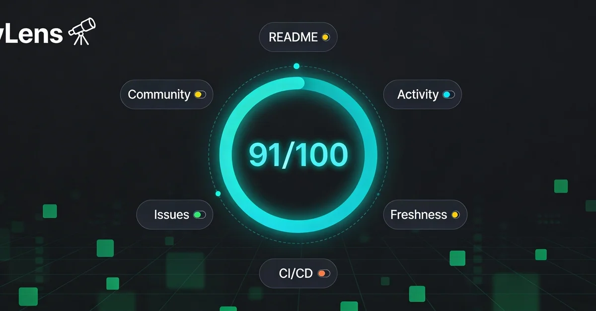 - 분석 지표: README 품질(20%), 커밋 활동(20%), 최신성(15%), 문서화(15%), CI/CD(15%), 이슈 응답(10%), 커뮤니티 신호(5%) 구성