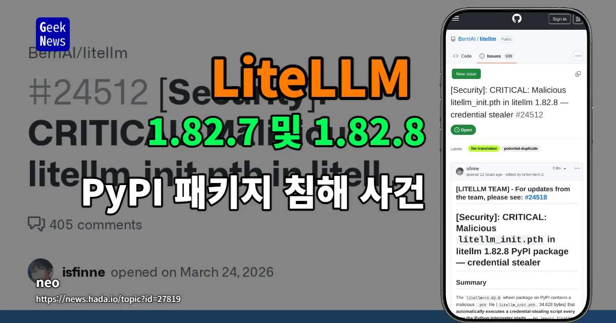 LiteLLM 1.82.7 및 1.82.8 PyPI 패키지 침해 사건