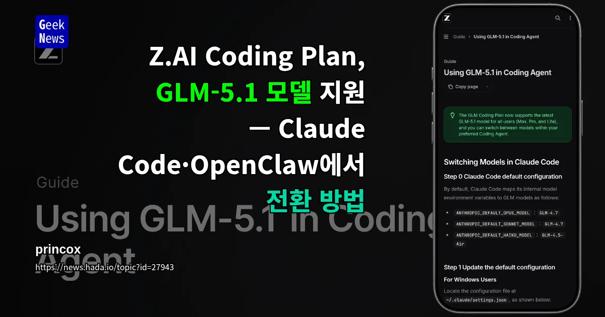 Z.AI Coding Plan, GLM-5.1 모델 지원 — Claude Code·OpenClaw에서 전환 방법
