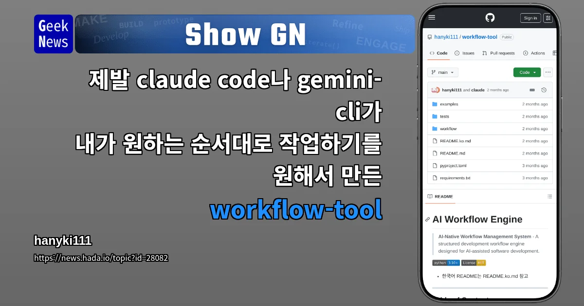 Show GN: 제발 claude code나 gemini-cli가 내가 원하는 순서대로 작업하기를 원해서 만든 workflow-tool