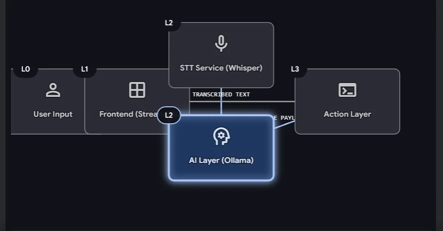 기존 클라우드 의존적 AI 도구의 데이터 프라이버시 침해와 높은 Latency 문제 분석. 로컬 환경에서 동작하는 경량화된 Voice-to-Action 시스템 구축을 통한 데이터 외부 유출 원천 차단 설계.