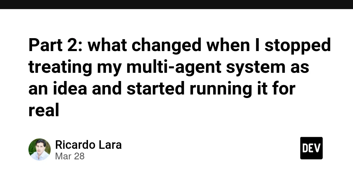 Part 2: what changed when I stopped treating my multi-agent system as an idea and started running it for real