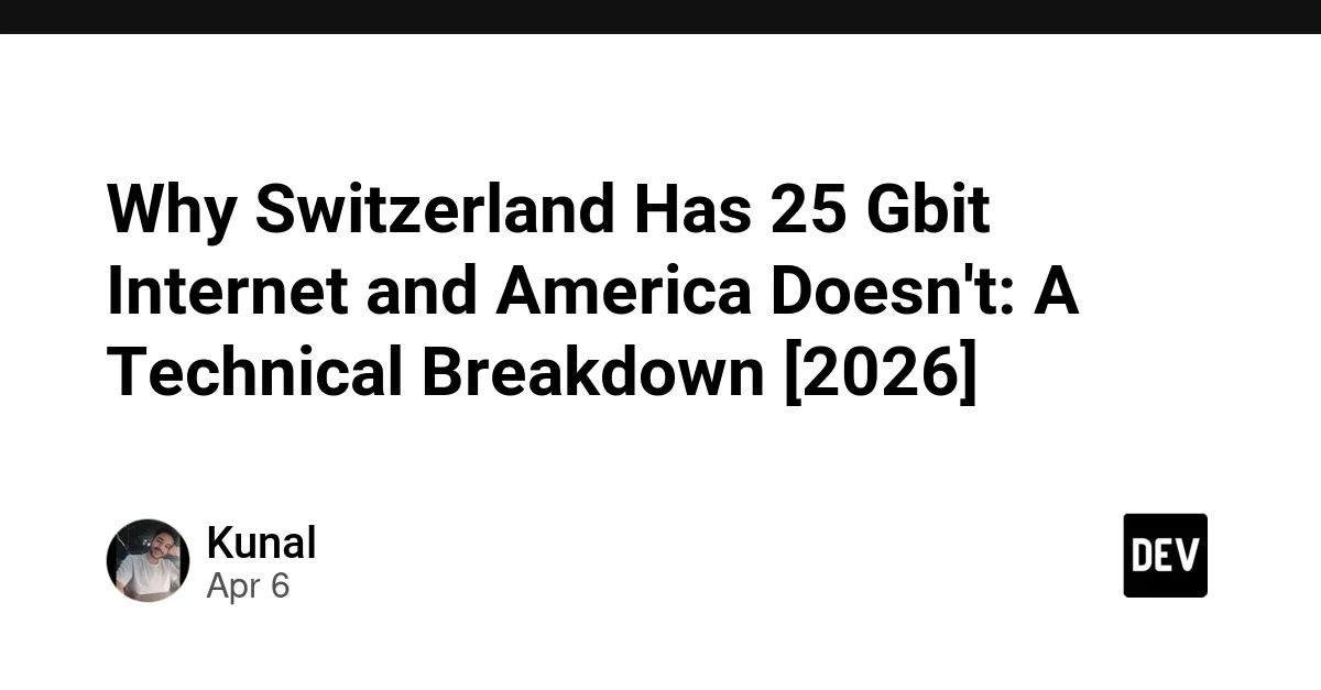 피드로 돌아가기![Why Switzerland Has 25 Gbit Internet and America Doesn't: A Technical Breakdown [2026]](https://tsewlmecqtvqphyhezcm.supabase.co/storage/v1/object/public/thumbnails/f0be4882-9d99-4394-9eb9-652360a89bf3.webp?)