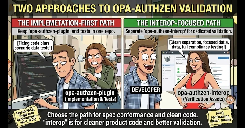 - 제품 구현체인 opa-authzen-plugin과 검증 인프라인 opa-authzen-interop를 분리한 저장소 전략 채택
