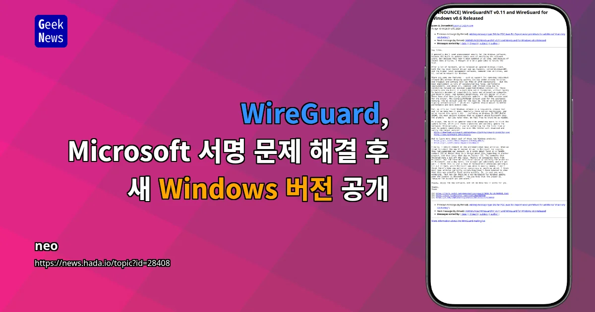 Windows Hardware Program의 계정 재검증 절차로 인한 코드 서명 계정 비활성화 발생. 커널 드라이버 배포를 위한 필수 서명 권한 상실로 인해 WireGuard를 포함한 다수 FOSS 프로젝트의 업데이트 중단 상황.