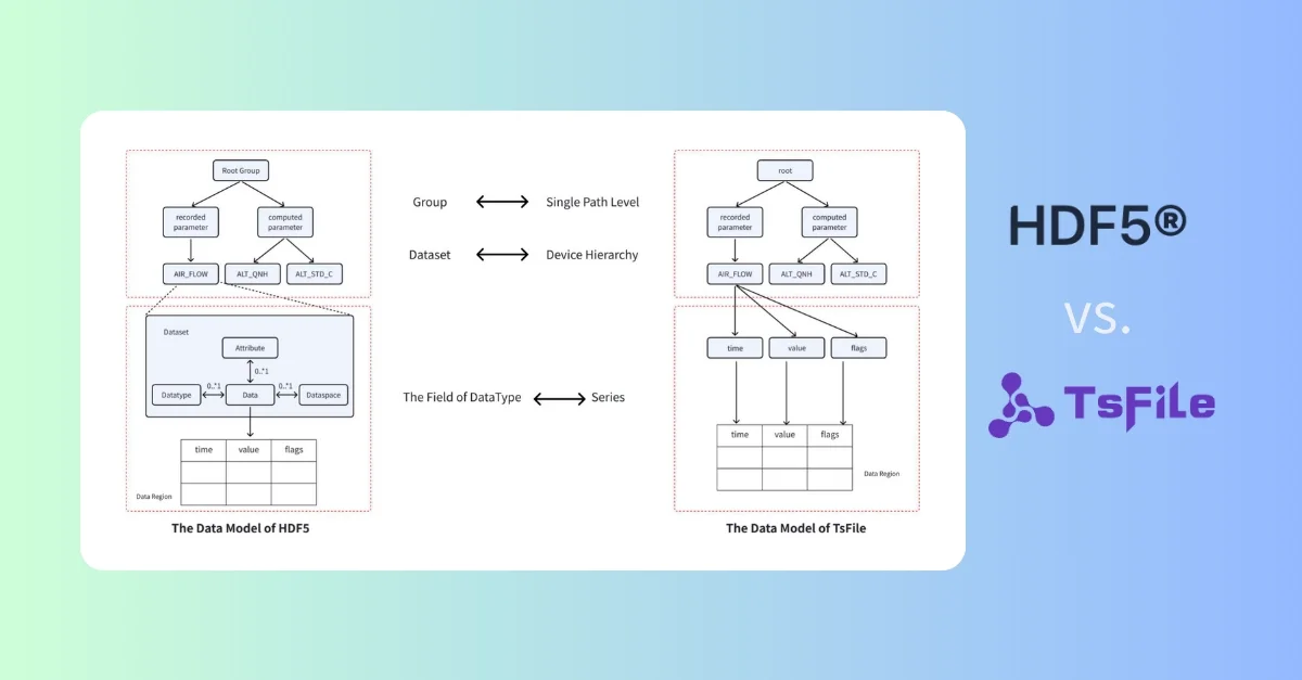 TsFile, HDF5 대비 저장 공간 85% 절감(18TB→2.2TB), 압축률 8배 향상